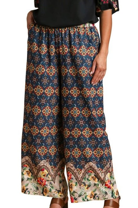Print high-waisted wide leg pants