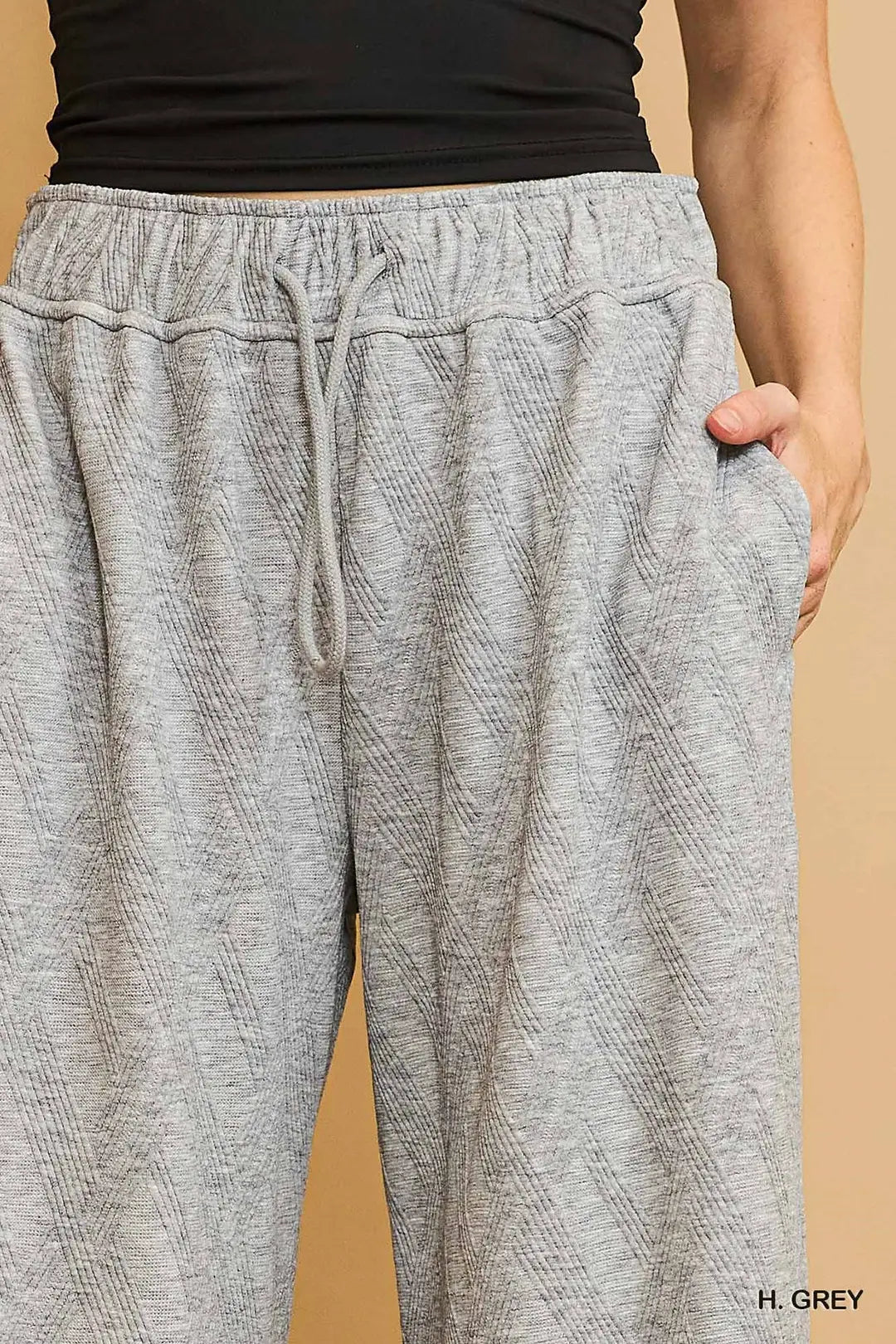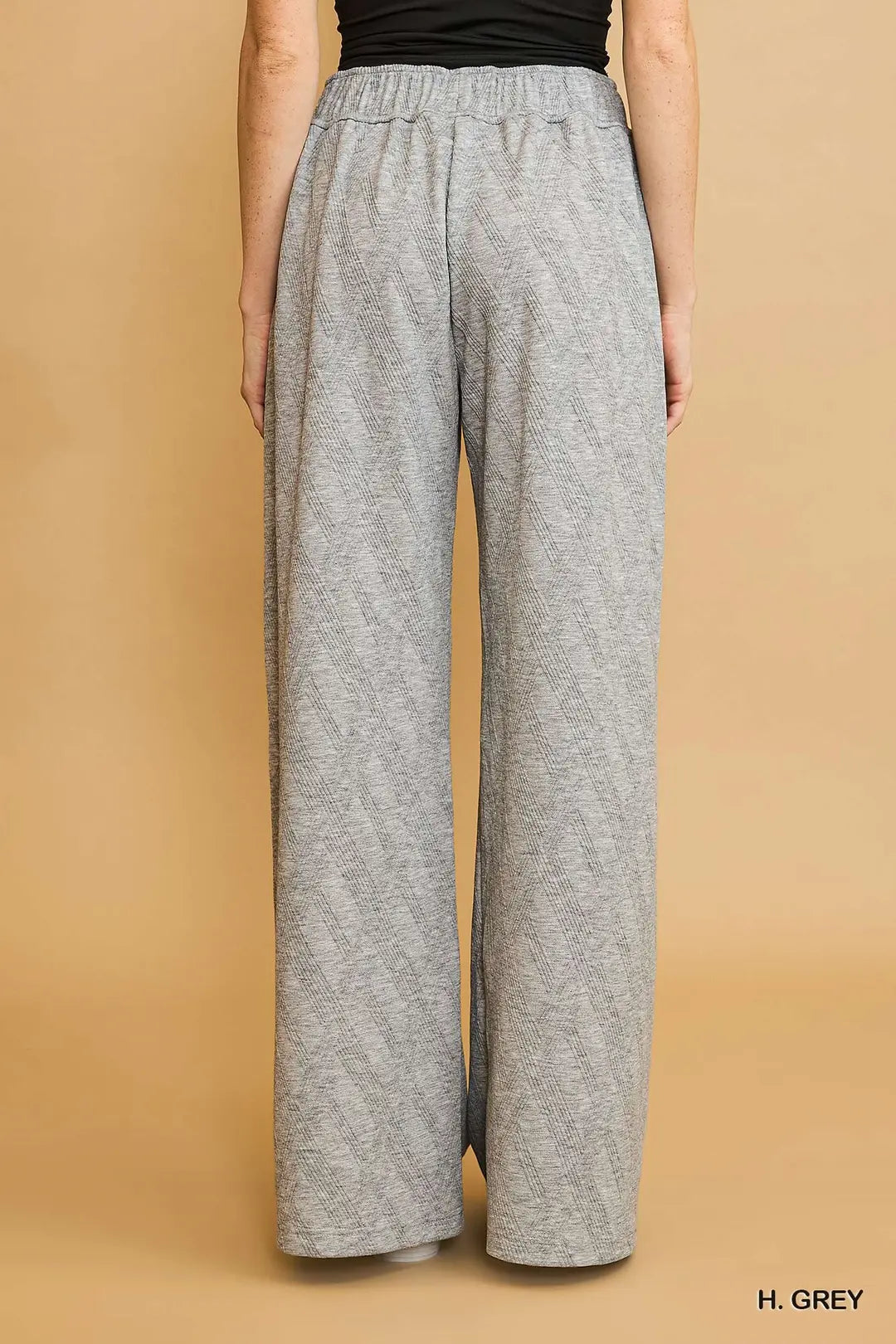 Jacquard Wide Leg Baggy SweatpantsDetails• Jacquard Material• Wide Leg / Baggy Style• Not LinedFit & Model Notes• Model is 5'9" and is wearing a small.• All Measurements are approximate.Fabric Contents• 50% Polyester• 45% Rayon• 4% Spandex