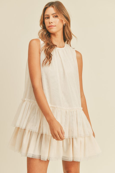 [MD3363] SLEEVELESS TULLE TIERED MINI DRESS
