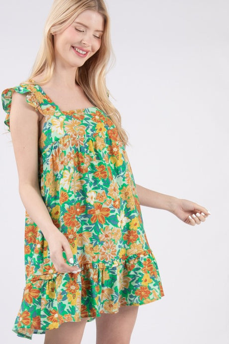 Floral Printed Ruffle Waist Babydoll Mid