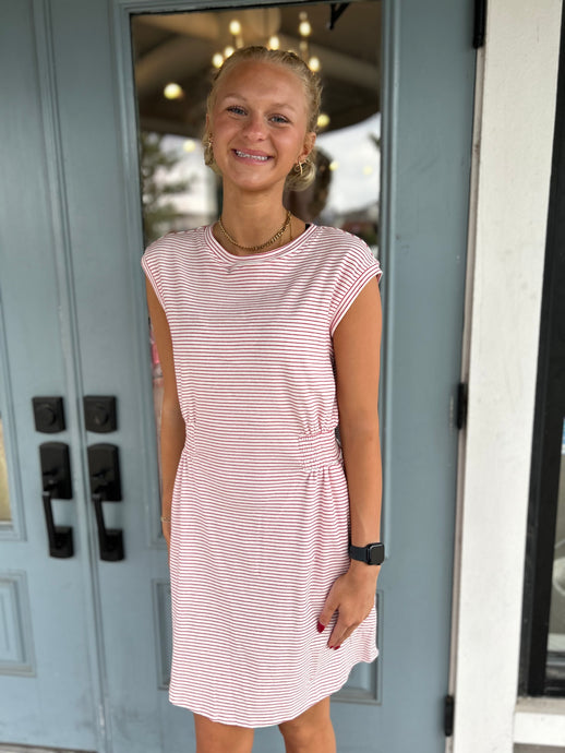 Stripe Crew Neck Muscle Style Mini Dress