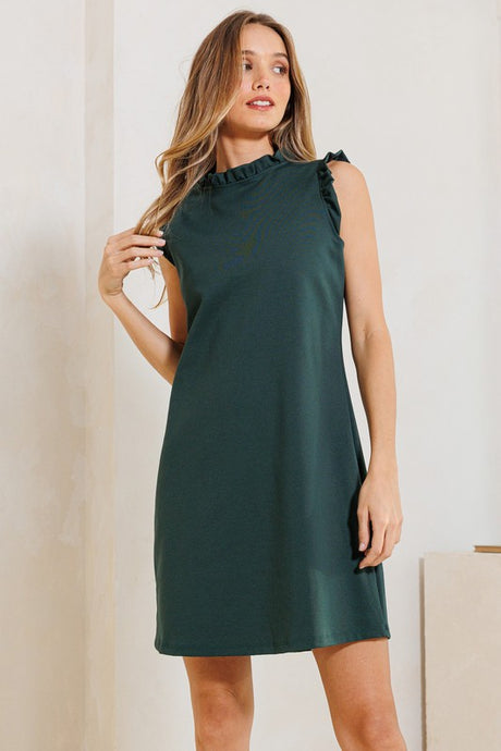 Ruffle Sleeves & Neck Solid Tunic Dress