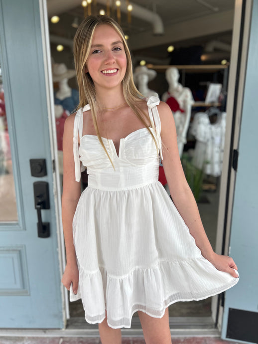 Washed Denim Tie Shoulder Dress