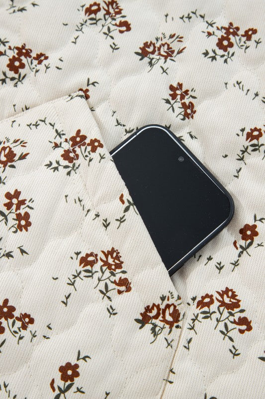 Boho/Coquette/Cozy/Fall Outerwear Pretty floral print adds a fresh, feminine touch to your layering. Quilted design keeps you warm and cozy on chilly days. Zip up closure makes this floral vest easy to wear and style. Lightweight yet warm - perfect for outdoor casual looks.